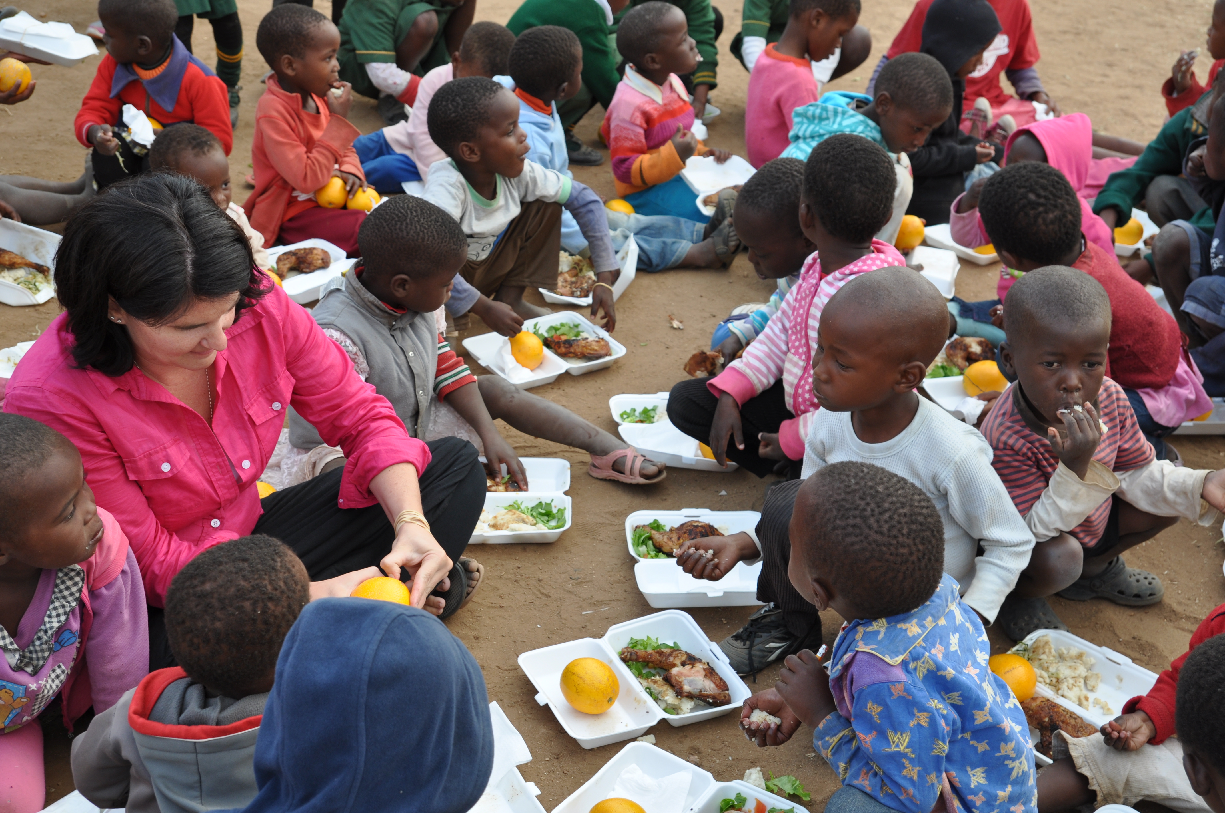 As you can see in the picture below – each child was given a small container with 1 orange and 1 piece of chicken, some greens, and some rice. They kept me busy peeling oranges, but what shocked me was that the kids had me peel their orange and then they closed their containers. I thought at first maybe, (just maybe) the orange would have filled them up and they were keeping the food for later. After asking one of the helpers at this care point, I found out these young orphans closed their containers to take the remaining food to the rest of their siblings and whatever “family” they would return home to after we left. My heart broke knowing this was a “special meal” for them (they would only receive a meal like this once every few months) and they were saving most of it for others.