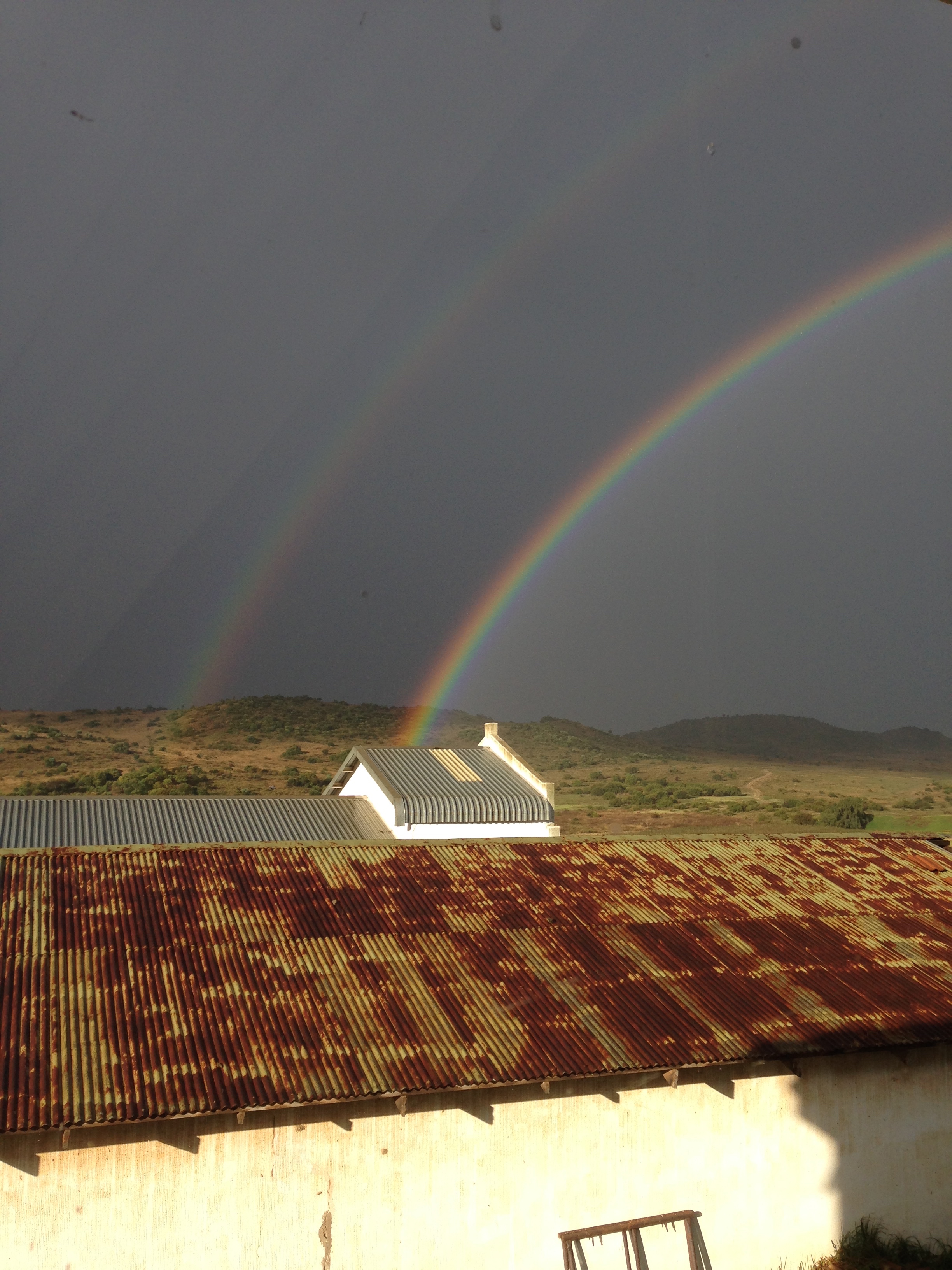 Our family has nicknamed South Africa – Seattle.  Everyone here always tells us how bad they need rain, and yet it seems like almost every other day since we have been here it has rained.  Not just an afternoon shower – it has really rained.  But, after a rain storm last week we saw the sun peering in the window, and I told the boys they better go and look for the rainbow.  We found it, and for a while it was a double rainbow.