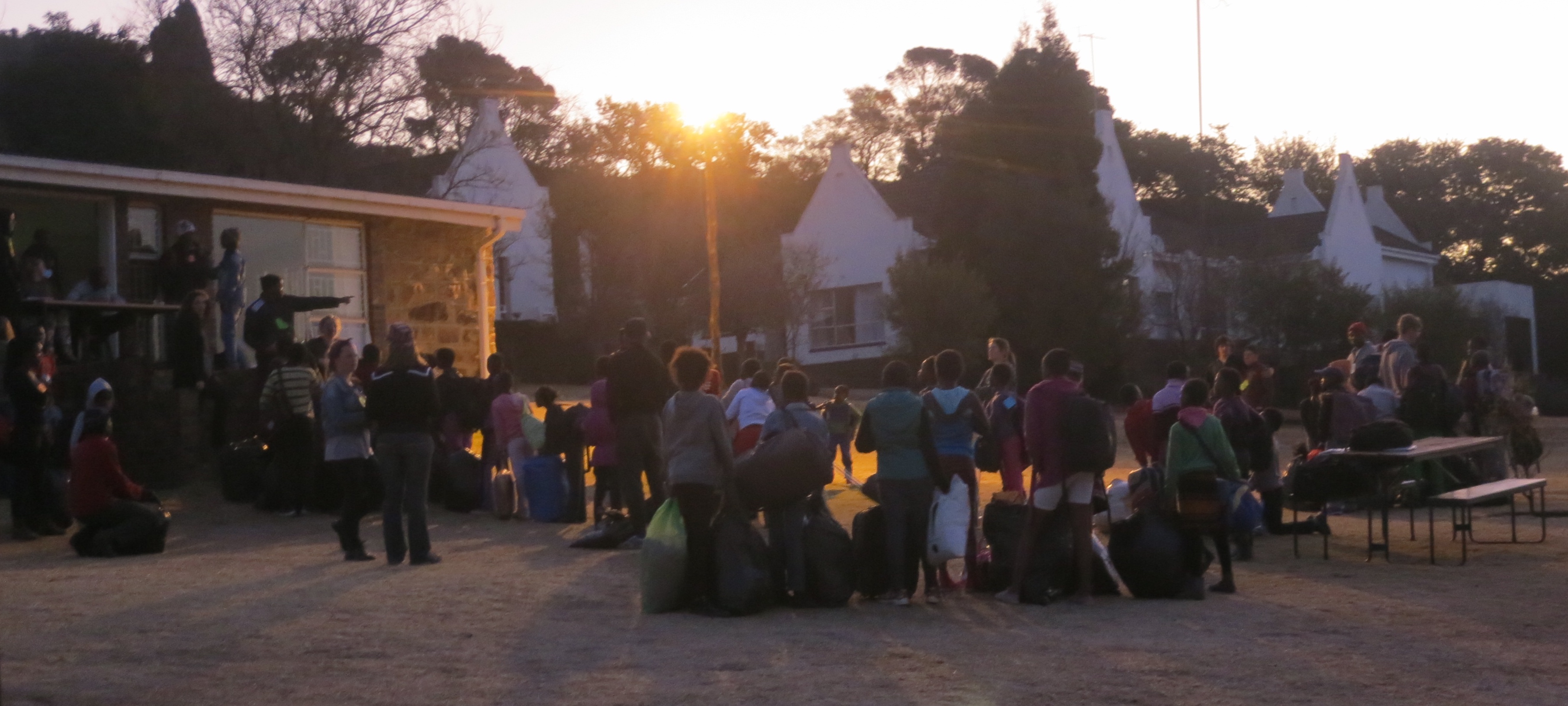 The picture below is dark, but this is everyone getting checked-in and divided into their dorms according to age.