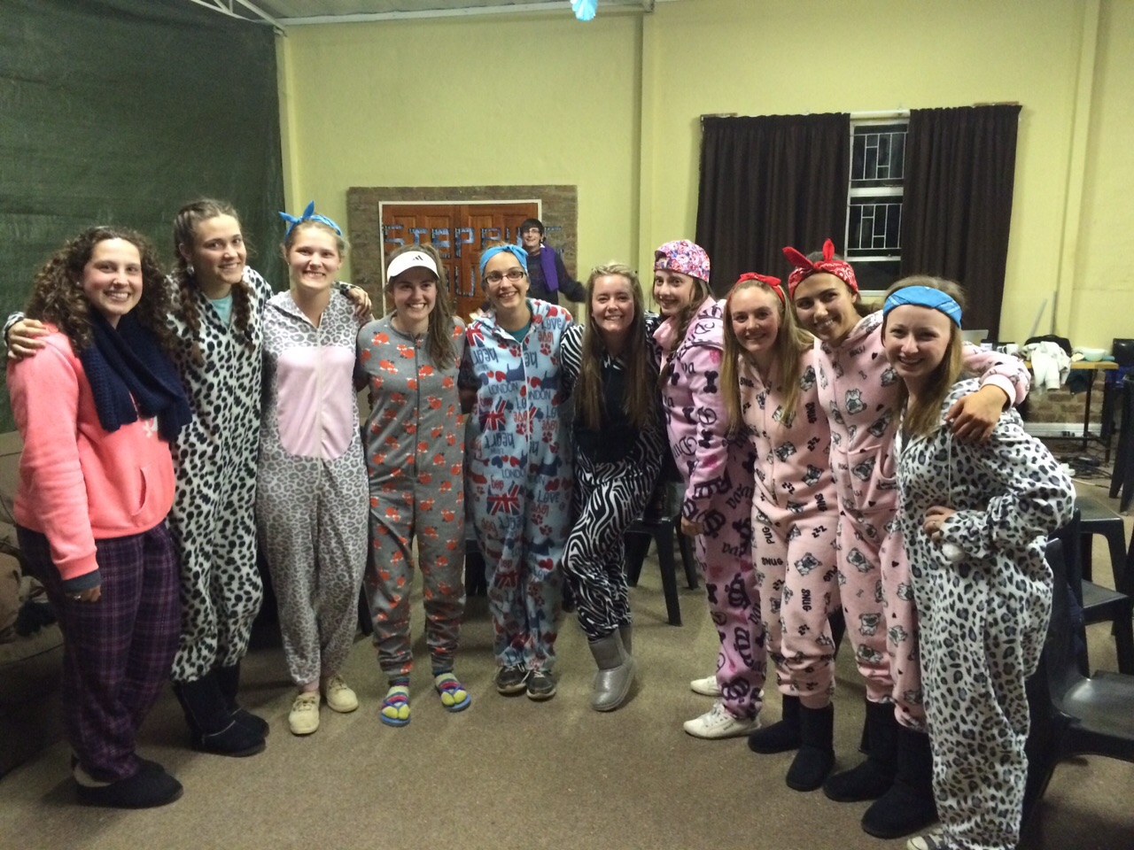 - The fourth week they participated as counselors in sports camp. The picture below is all of the girl counselors as they prepared for the talent show.