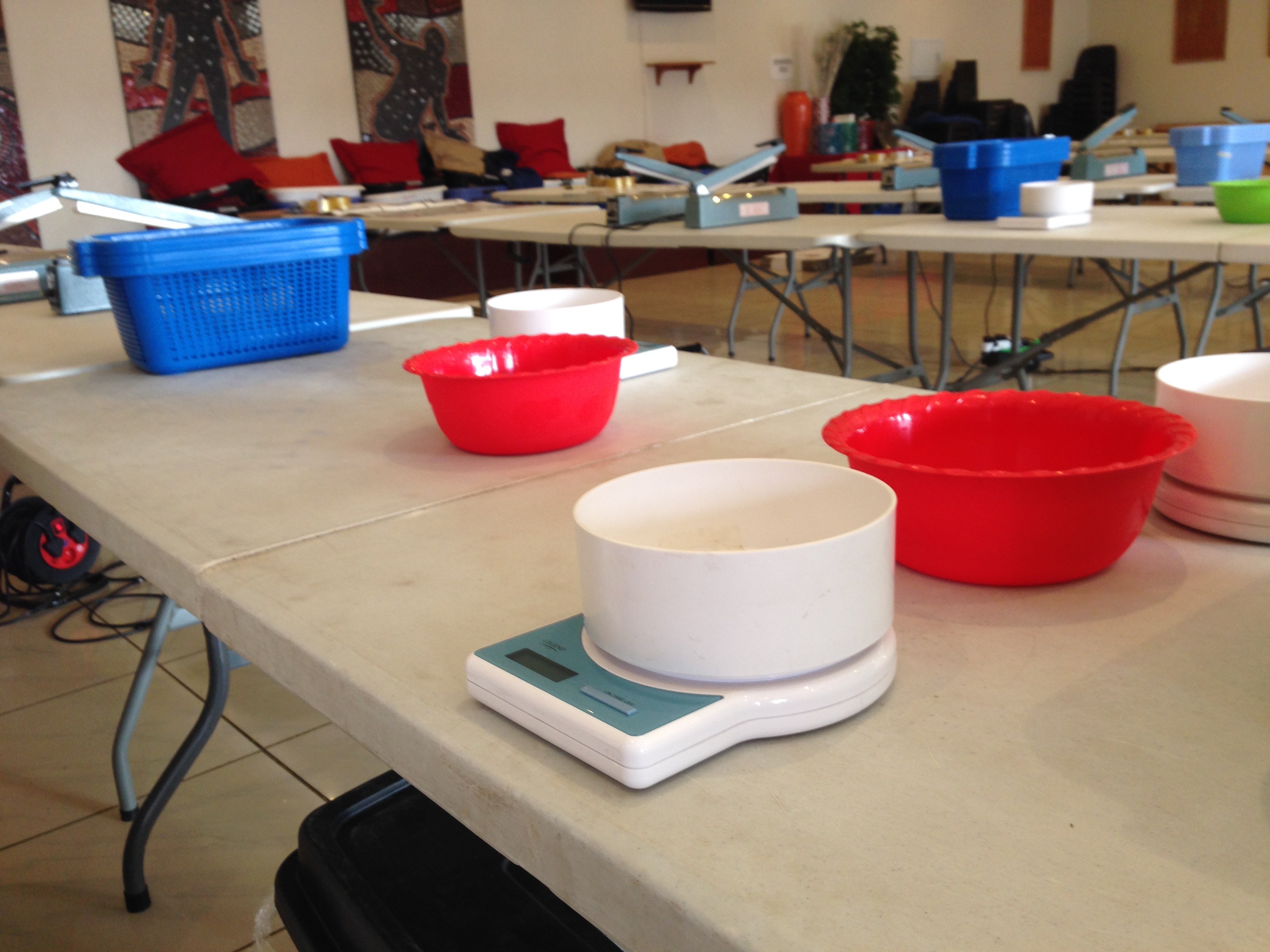 and being busy has felt really good. Sometimes when we are idle, we can begin to feel homesick!! Rob was able to pick up some friends who were here visiting from North Carolina (Robert, Ginger, Meagan & Lindsey). They had asked if they could bring anything over for us. Rob asked for a few tape measures, saw blades, and power strips, and I asked if they could throw a few bags of chocolate chips in their suitcases. Much to our surprise they brought us everything we had asked for and more. As you can see in the picture below we received 16 pounds of chocolate chips. We have already made chocolate chip cookies a few times, our first bag is getting low.