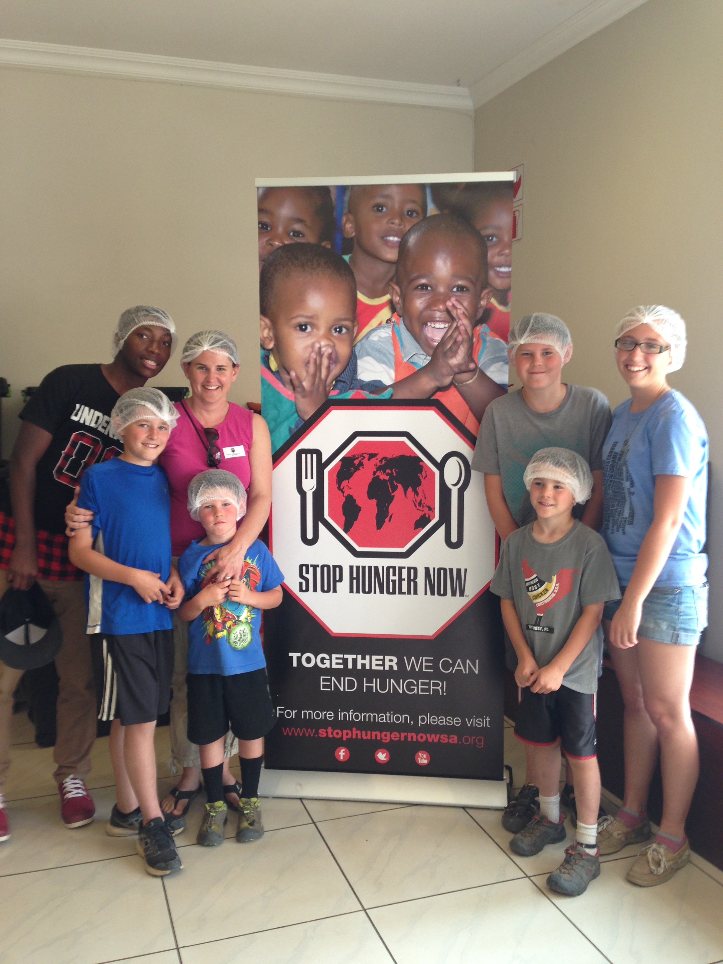 We all (the 4 boys and 2 J-life trainees) went to Waterstone College yesterday in Johannesberg, where Nathan and Jordan attend school. The school had been raising awareness and funds to help with the STOP HUNGER NOW organization. Once the funds were raised, the organization sends a STOP HUNGER NOW representative to facilitate the packaging of the food. The meals are highly nutritious and consist of rice, soya, dehydrated vegetable mix and a fortification pack of 23 essential minerals and vitamins specifically formulated to combat malnutrition.