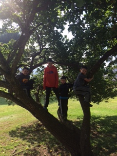 We also found a pole that we have been climbing everyday for exercise. Here are a few pictures of us. I am helping Hudson climb to the top so there isn’t a picture of me.